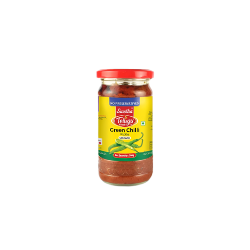 Experience the fiery delight of Telugu Foods Green Chilli Pickle, a sensational additi…