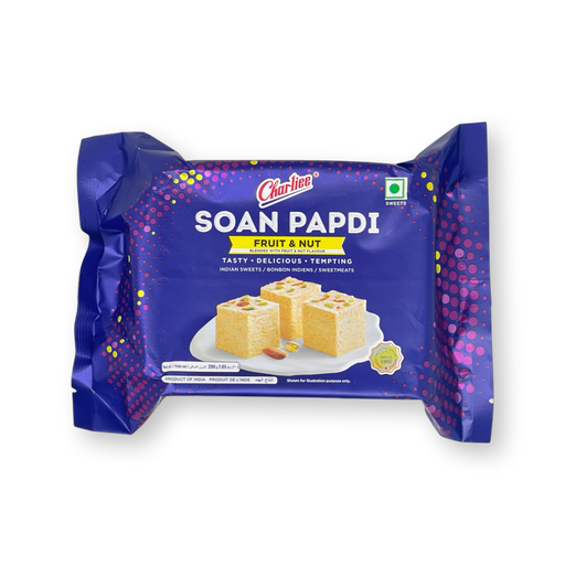 Indulge in the sweet and crunchy taste of Charliee Soan Papdi Fruit and Nut Sweets. This delightful box of sweets is made with a mix of fruits an…